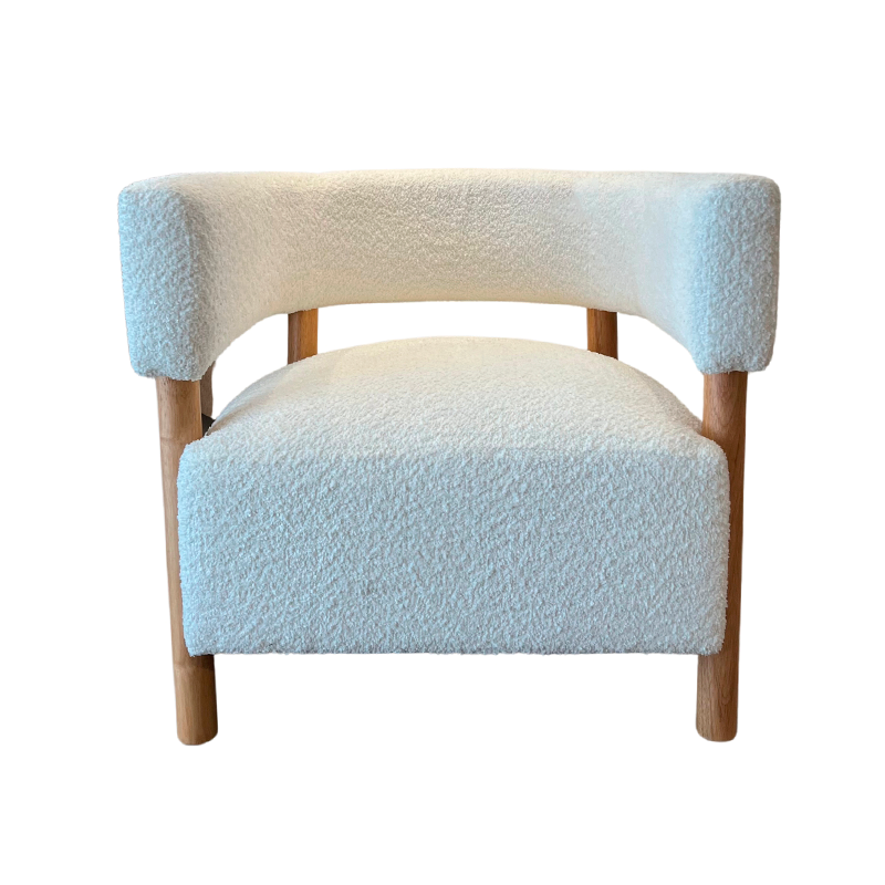 Butaca de madera maciza de haya, tapizada en lino rústico. Una pieza versátil que combina resistencia y estética natural, ideal para estudios de arquitectura y comercios de diseño.