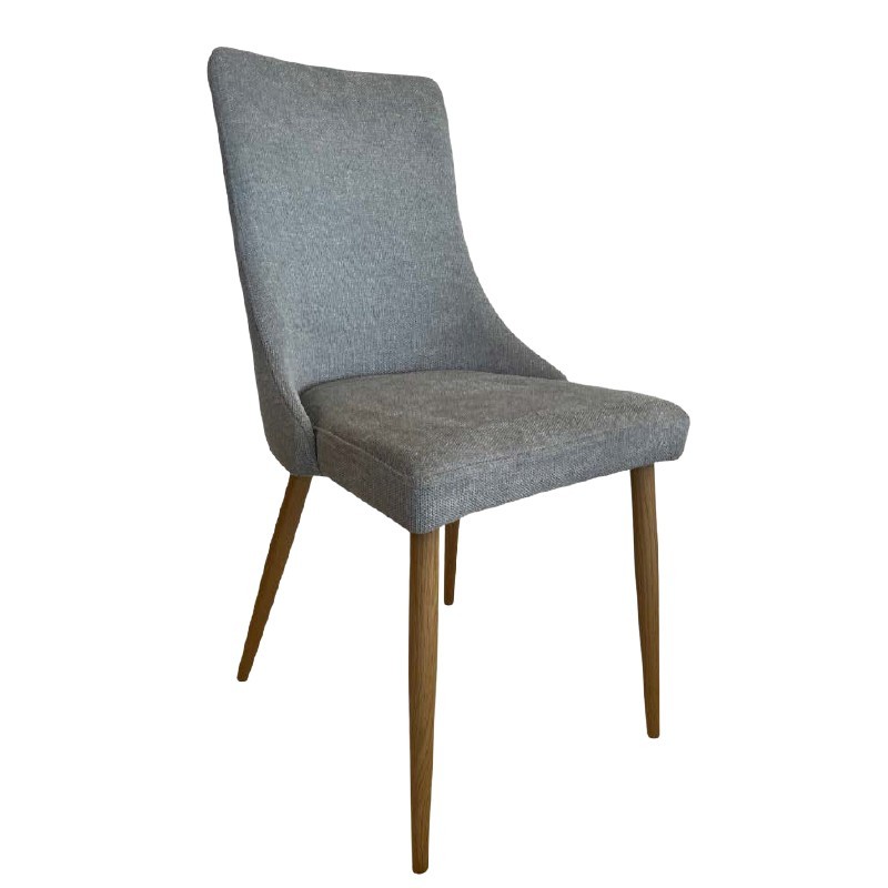Silla con respaldo alto rectangular redondeado y patas cilindricas de estilo nórdico con acabado simil madera.